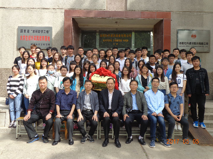洛阳牡丹通讯股份有限公司业务部经理汪平和培训中心主任常文廷、我院副院长翟卫青等三位老师和2014级电子信息工程专业同学,共同见证了实习实训基地共建协议签署仪式。