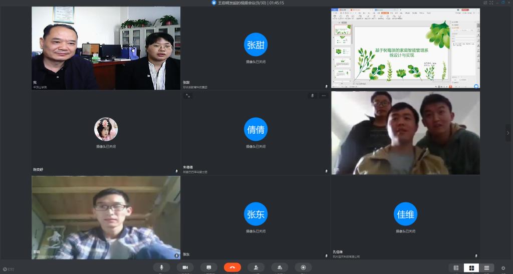 电子信息工程专业和物联网信息工程专业共335名学生分为6组在钉钉会议上进行答辩。此次线上答辩工作经过院系的周密研讨,形成《太阳成tyc9728集团2020届学生线上毕业论文答辩工作实施方案》,并将答辩形式,答辩分组,答辩流程,答辩注意事项等以文件的形式提前发与学生,针对学生从未接触线上答辩的客观情况,录制演示视频,帮助学生熟悉线上答辩操作。答辩过程中,答辩人事先把拍摄的实物视频发给答辩老师,然后进行论文内容、研究方法和创新点的PPT展示和阐述;由学院老师组成的答辩小组成员对答辩人进行提问,给予学生适当的思考时间后,答辩人开始答辩;最后,答辩小组人员分别对答辩人的回答进行补充和评价,丰富学生答辩内容。线上答辩结束后,答辩小组综合学生的毕业论文的学术水平和答辩人的答辩情况进行评议,确定学生毕业论文答辩成绩,对学生的毕业论文(设计)质量进行严格评审。