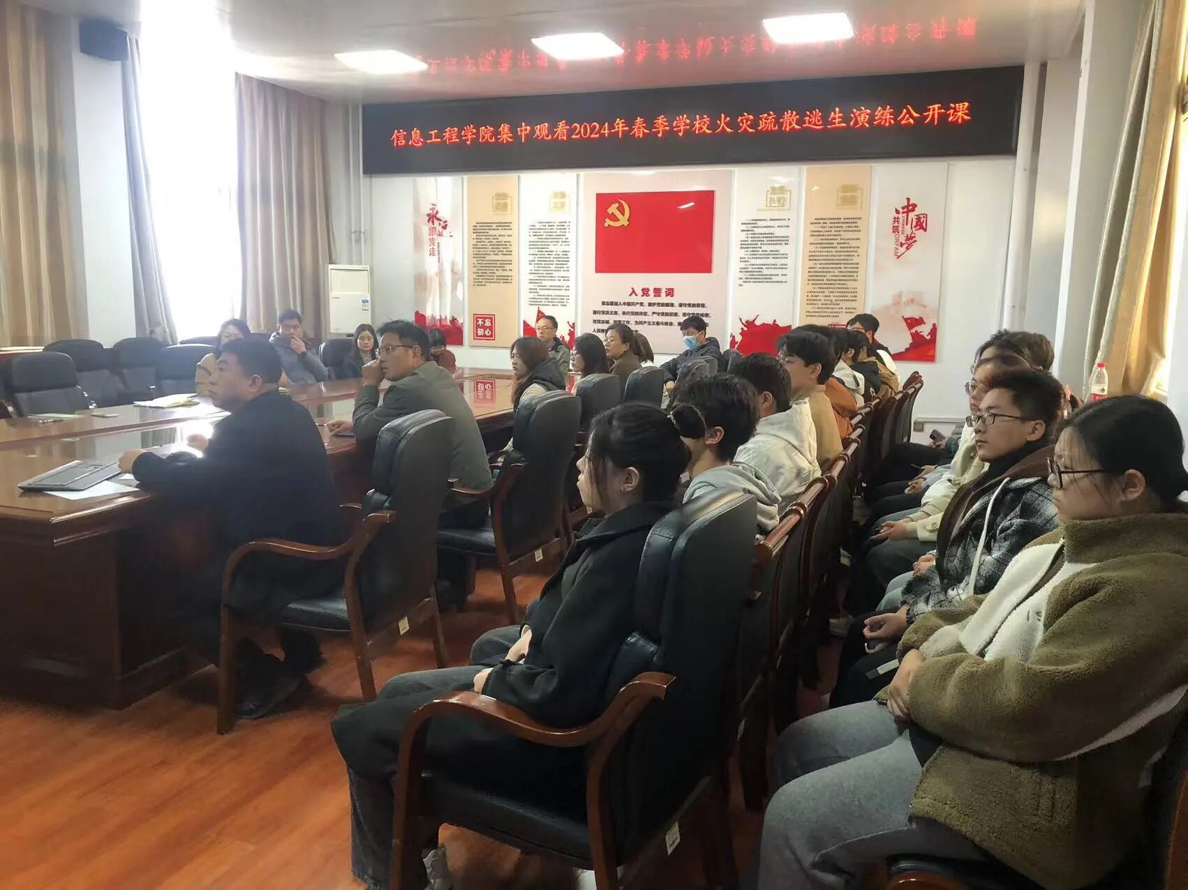 为提高广大学生、教职员工消防安全意识和自防自救能力,坚决防范和遏制火灾事故发生,太阳成tyc9728集团于2024年3月15日上午九点在4214组织集中观看2024年春季学校火灾疏散逃生演练公开课。太阳成tyc9728集团教职工代表和学生代表参加。