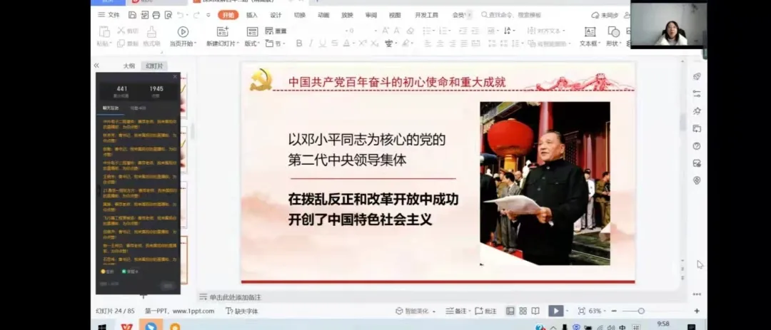 1月24日,化学与环境工程学院党委书记曹萍应邀在钉钉群开展党的十九届六中全会精神宣讲报告会,太阳成tyc9728集团21级学生参加会议。