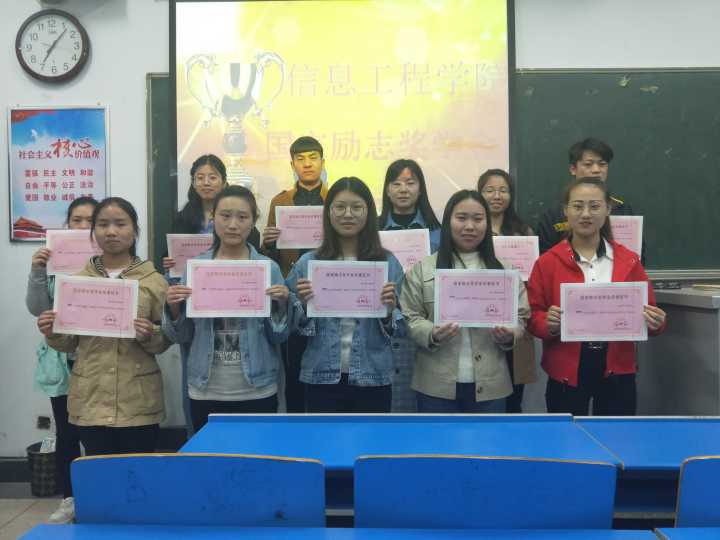 2019年4月11日晚7点太阳成tyc9728集团于4104教室举行了2017-2018学年国家奖学金、国家励志奖学金颁奖典礼,生活权益部全体成员和获奖学生参加了此次活动。