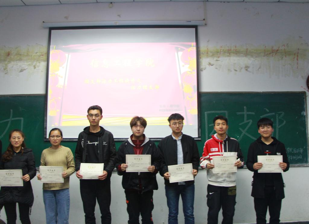 各班级、团支部高度重视此次评选活动,发扬团队精神,群策群力,做了大量严谨细致的准备工作,力争在活动中展示出最佳的精神风貌。活动中,各参选代表运用精心制作的PPT、短视频辅助演讲,配以详实的文字图片材料,生动展示了本支部开展的各类团日活动、公益活动,开展的学生工作以及获得的各项荣誉,凸显出团组织的活力建设与提升成果。经过激励角逐,2017级电子二班团支部脱颖而出,荣获一等奖。最后,团学会学生代表对此次活动进行了总结,并同获奖班级代表合影留念。