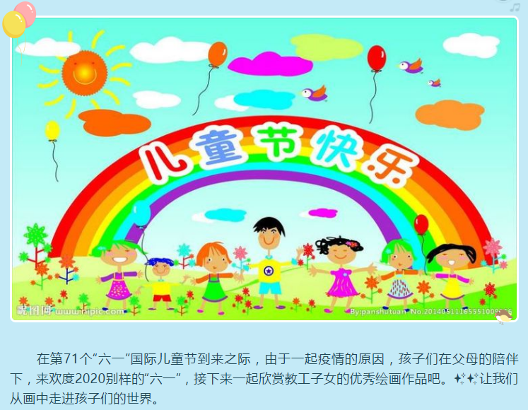为深入贯彻党的十九大精神,全面落实中央关于未成年人工作的部署和要求,进一步拓展女职工服务领域,加大女职工关怀力度,在“六一”国际儿童节即将来临之际,太阳成tyc9728集团分工会响应校工会安排,本着不聚集的原则,组织教职工在各自家庭开展儿童节活动,给孩子们带去学校工会的祝福。