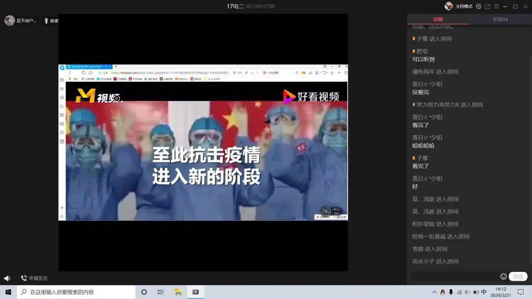 在2020年3月25日到3月29日,各班干部举办主题教育活动,在各班干部的带领下,大家一起关注微信公众号“平院心理协会”阅读《共抗疫情,平院在行动》,《国鼎育心讲堂》等系列有关心理疏导的文章,解决假期过程中出现的家庭问题、心理矛盾以及不安的小情绪。在观看文章过后,各班同学深有感悟,并以读后感表达自己的看法。