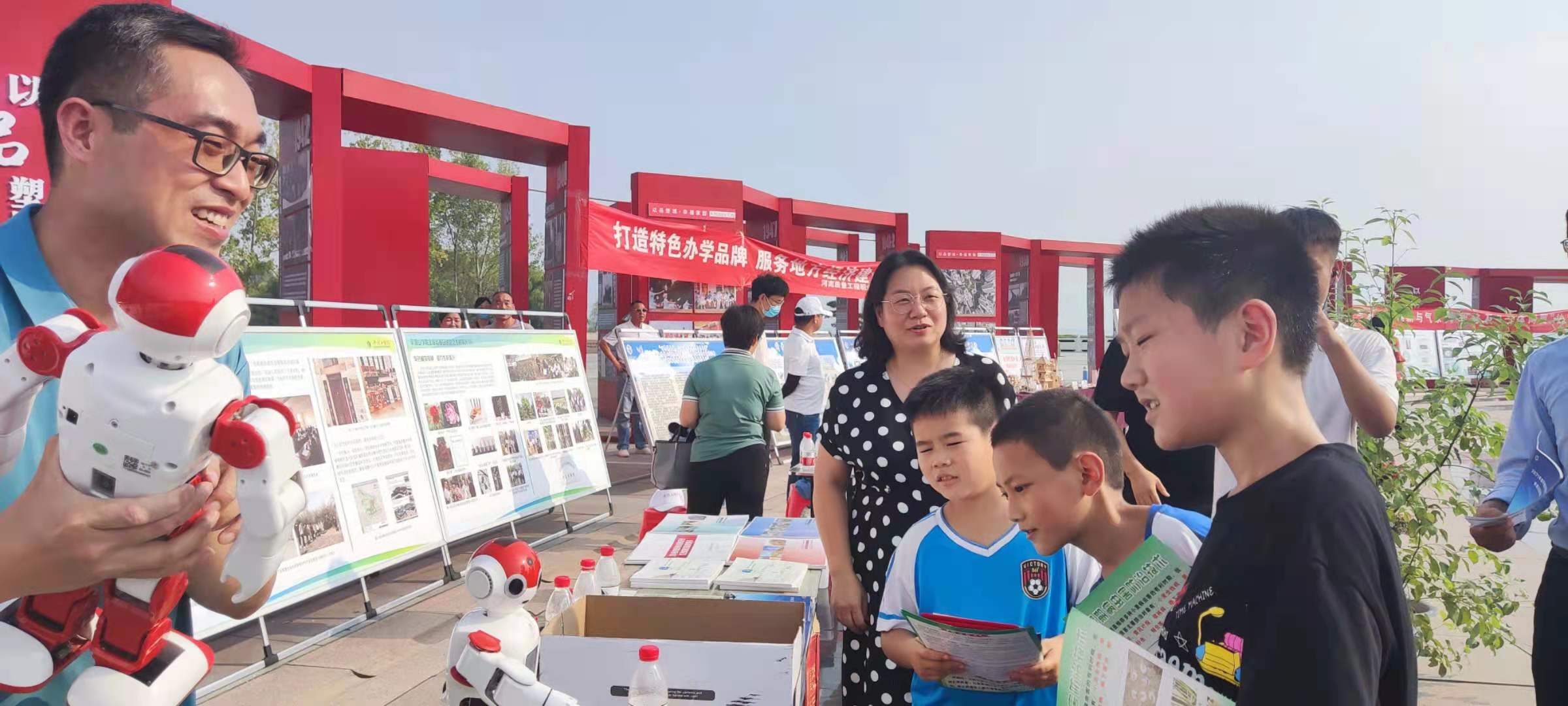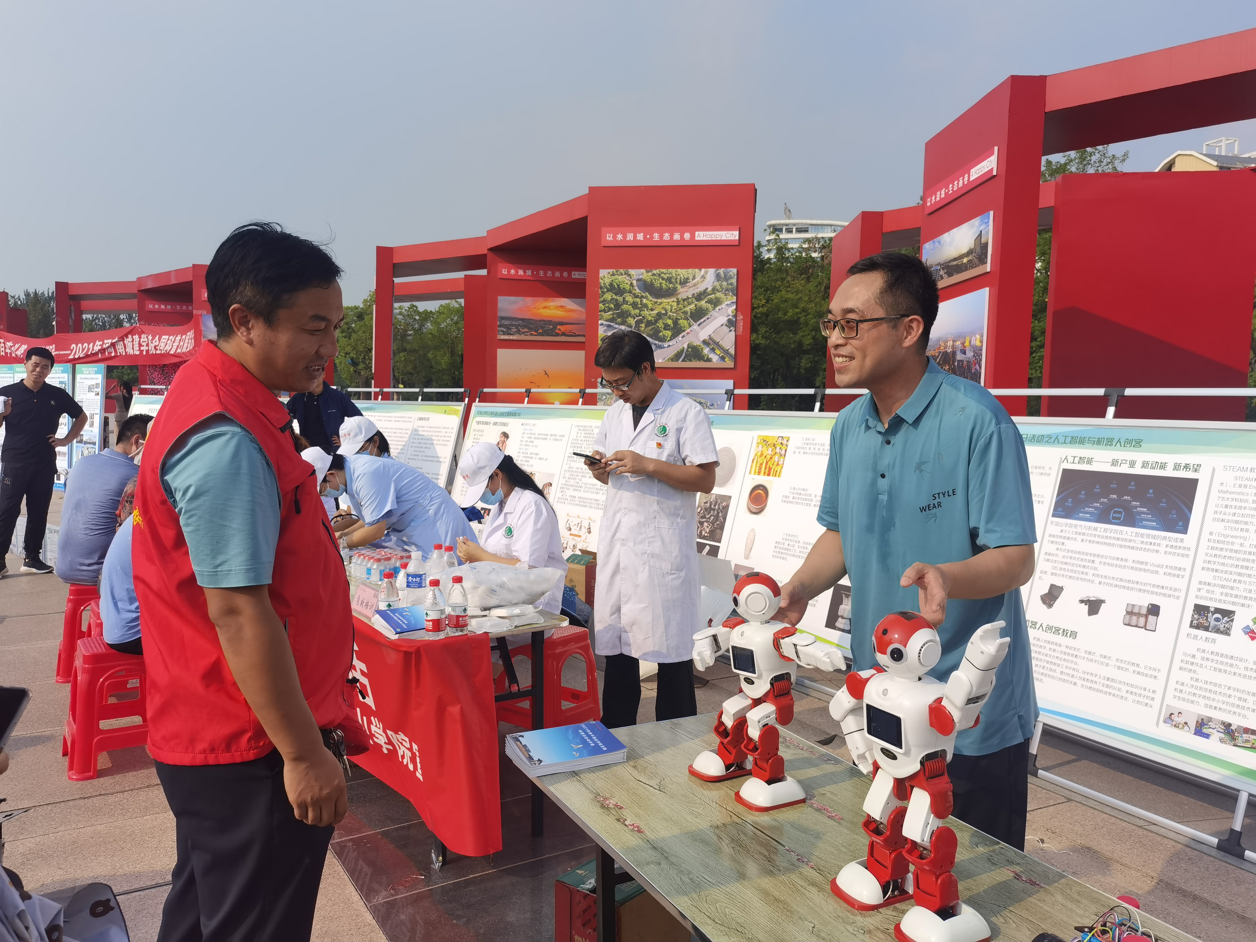 活动中,市领导、9728太阳集团党委副书记袁桂娥等人来到我院人工智能展区前,周老师为大家现场演示了如何操作机器人,多才多艺的机器人得到领导及市民朋友们的一致好评。