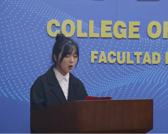 紧接着,19级电子信息工程一班王玉浩作为学生志愿者代表给大家分享了自己的感悟,她表示灾难使人痛苦,也使人成长。在灾区工作时,一个个物资从她手中传递过去,她感到的不仅是沉甸甸的爱,更是中国人民一方有难八方支援的感动。