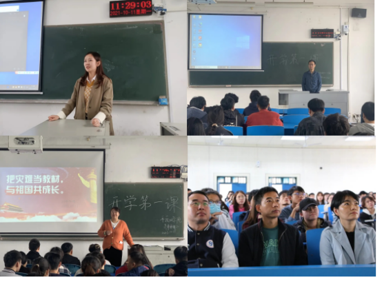 为积极贯彻习近平总书记关于大思政课建设的重要指示精神,不断深入推进“把灾难当教材 与祖国共成长”主题教育活动,2021年10月11日上午,太阳成tyc9728集团在四号教学楼采用线上和线下结合的形式组织开展“开学第一课”活动,太阳成tyc9728集团全体班子成员、科级以上干部、高层次人才代表、学业成长导师、各年级辅导员及全体学生参与本次活动,由党委书记王向前主持。