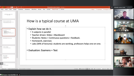 会上,双方就各自的教学理念和模式、教学方法、教学内容、教学资源、考核方式和试卷题型等进行了详细的交流,并就下一步高质量完成引进课程的教学进行了充分的沟通。