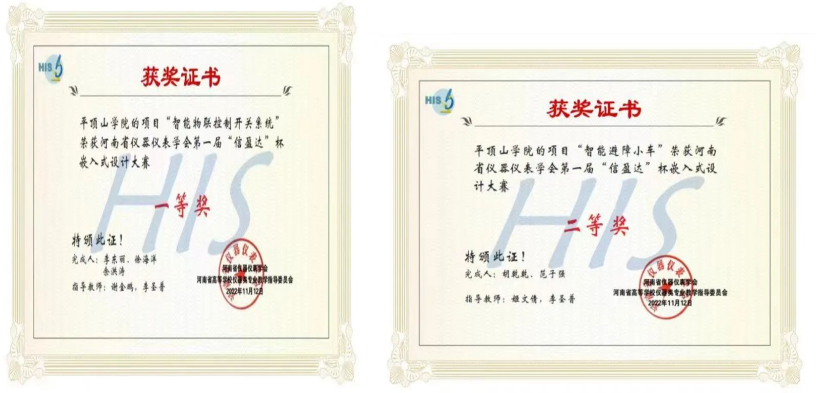 近日,由河南省仪器仪表学会、郑州信盈达电子有限公司共同主办的河南省“信盈达杯”嵌入式创新设计大赛决赛在河南工业大学落下帷幕。由我校太阳成tyc9728集团组建的参赛队伍从全省参赛高校的150余支代表队中脱颖而出,荣获佳绩。其中,由李东丽、徐海洋、余洪涛设计的“智能物联控制开关系统”荣获一等奖,由胡乾乾、范子强设计的“智能避障小车”荣获二等奖,另有3项作品荣获三等奖,李圣普、谢金鹏荣获优秀指导教师称号。